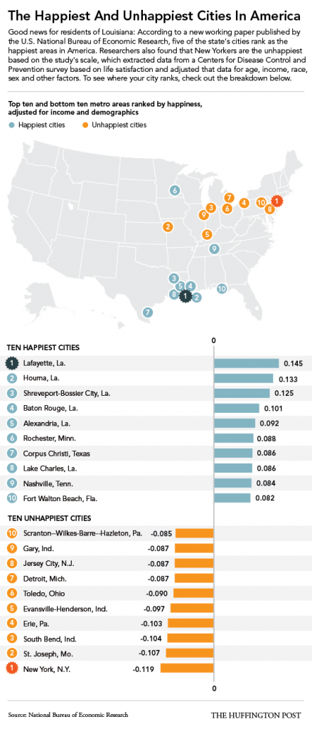 Do you think people in Shreveport are happier than in Naples, FL? What about Napa, CA? Or Even New Orleans?